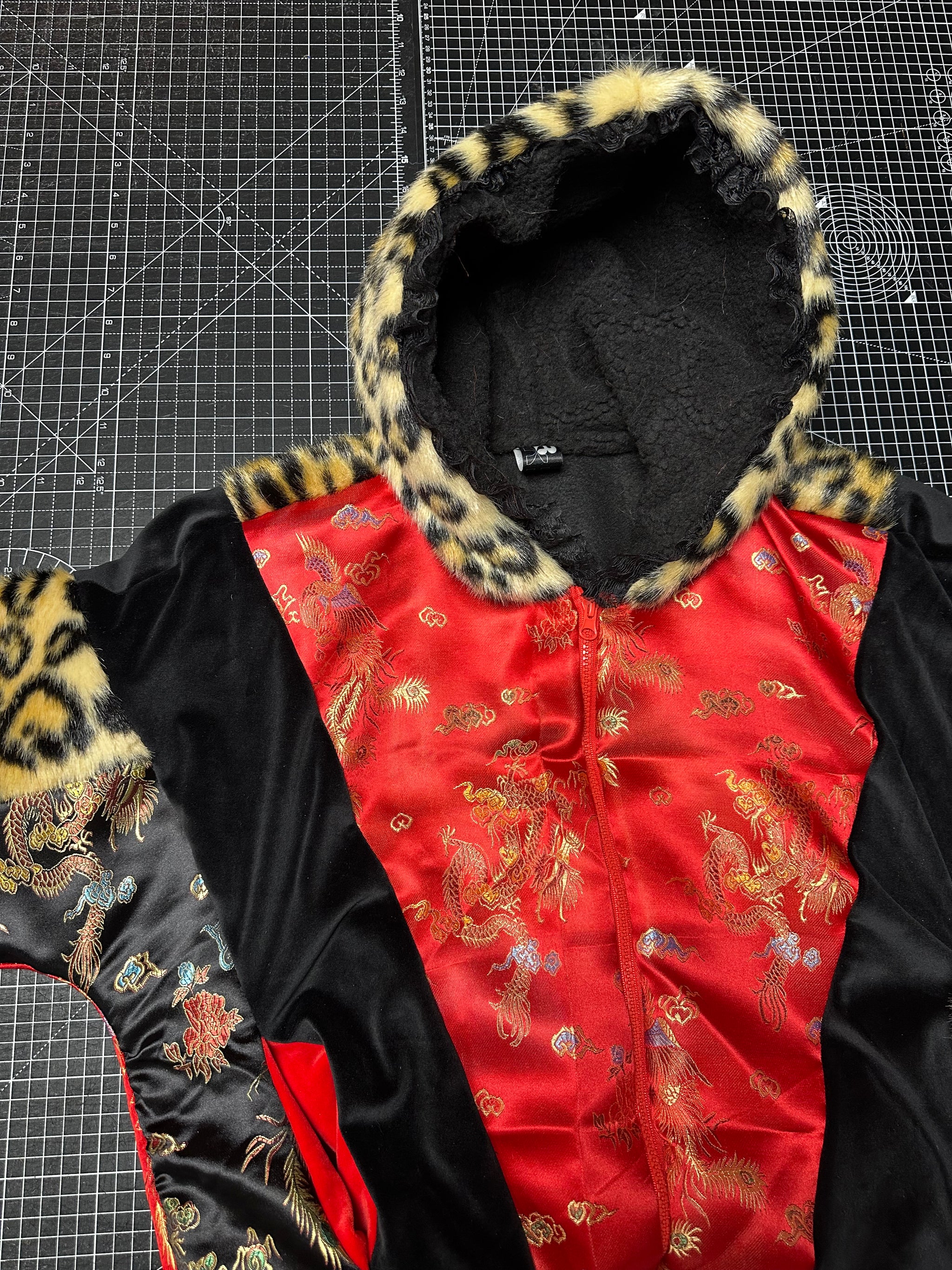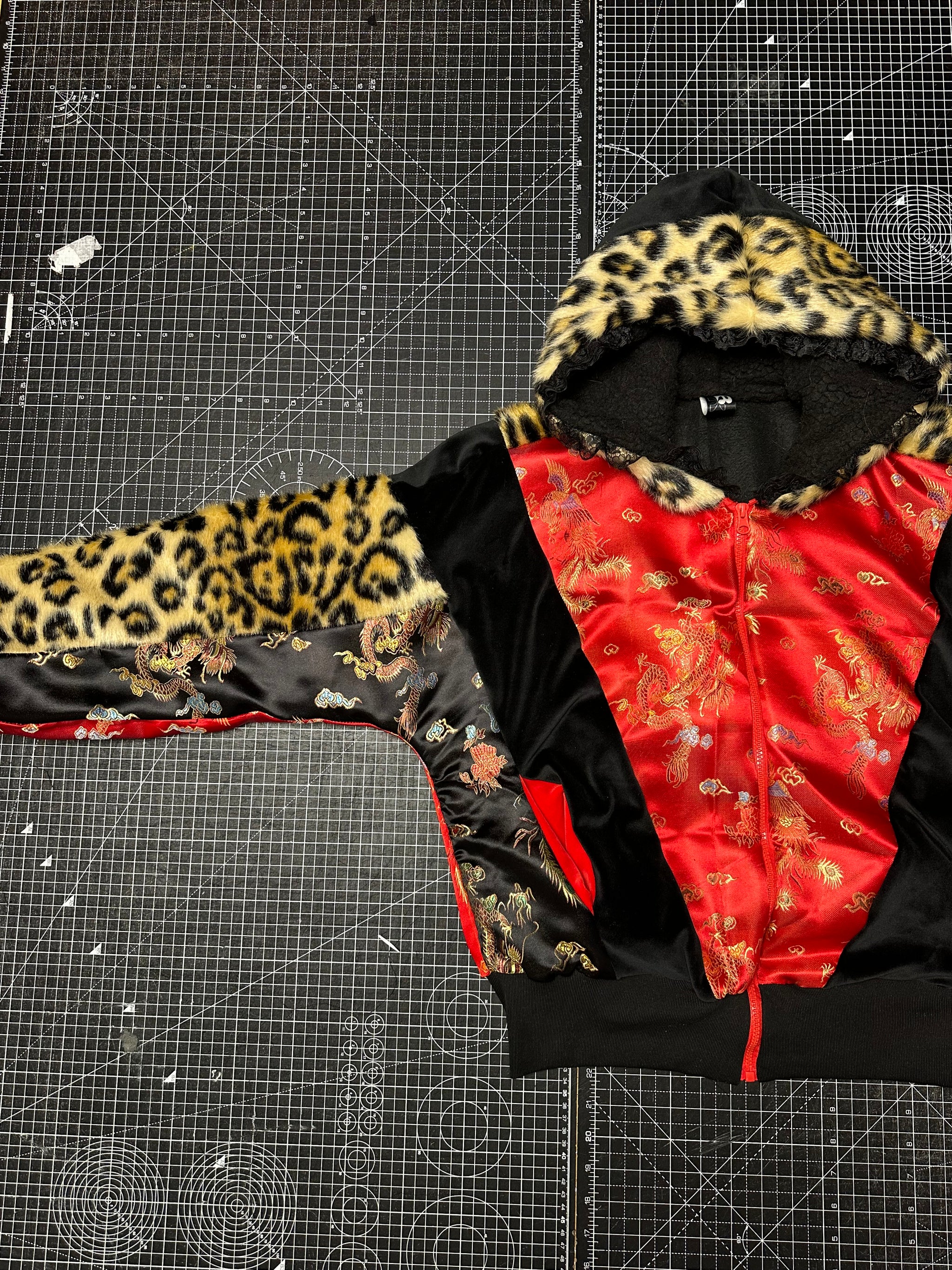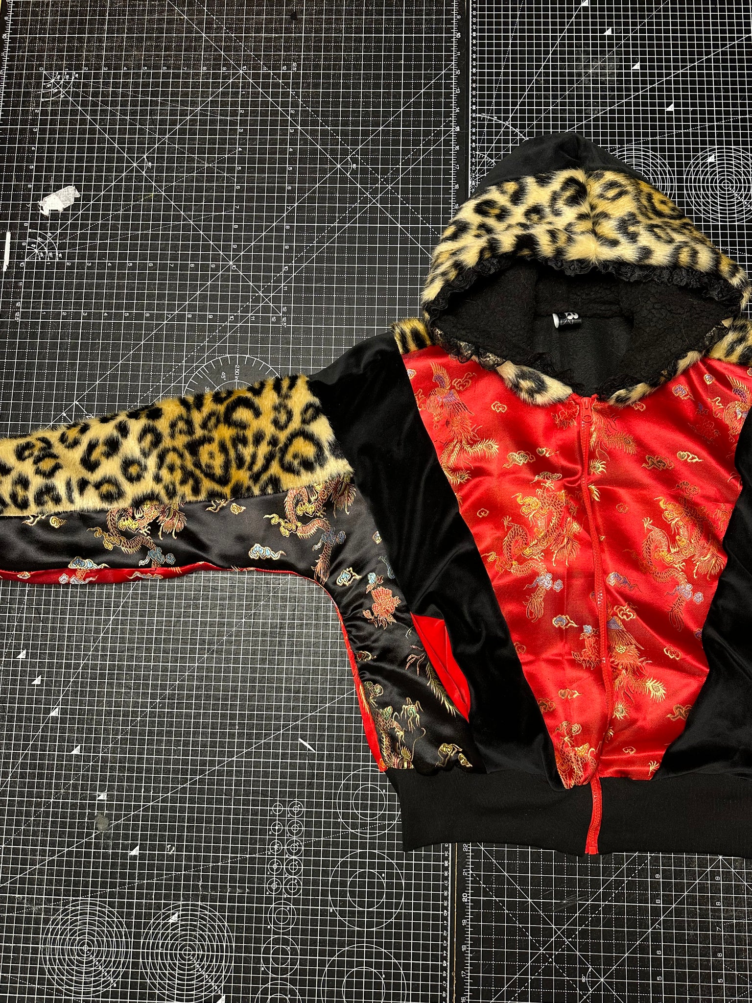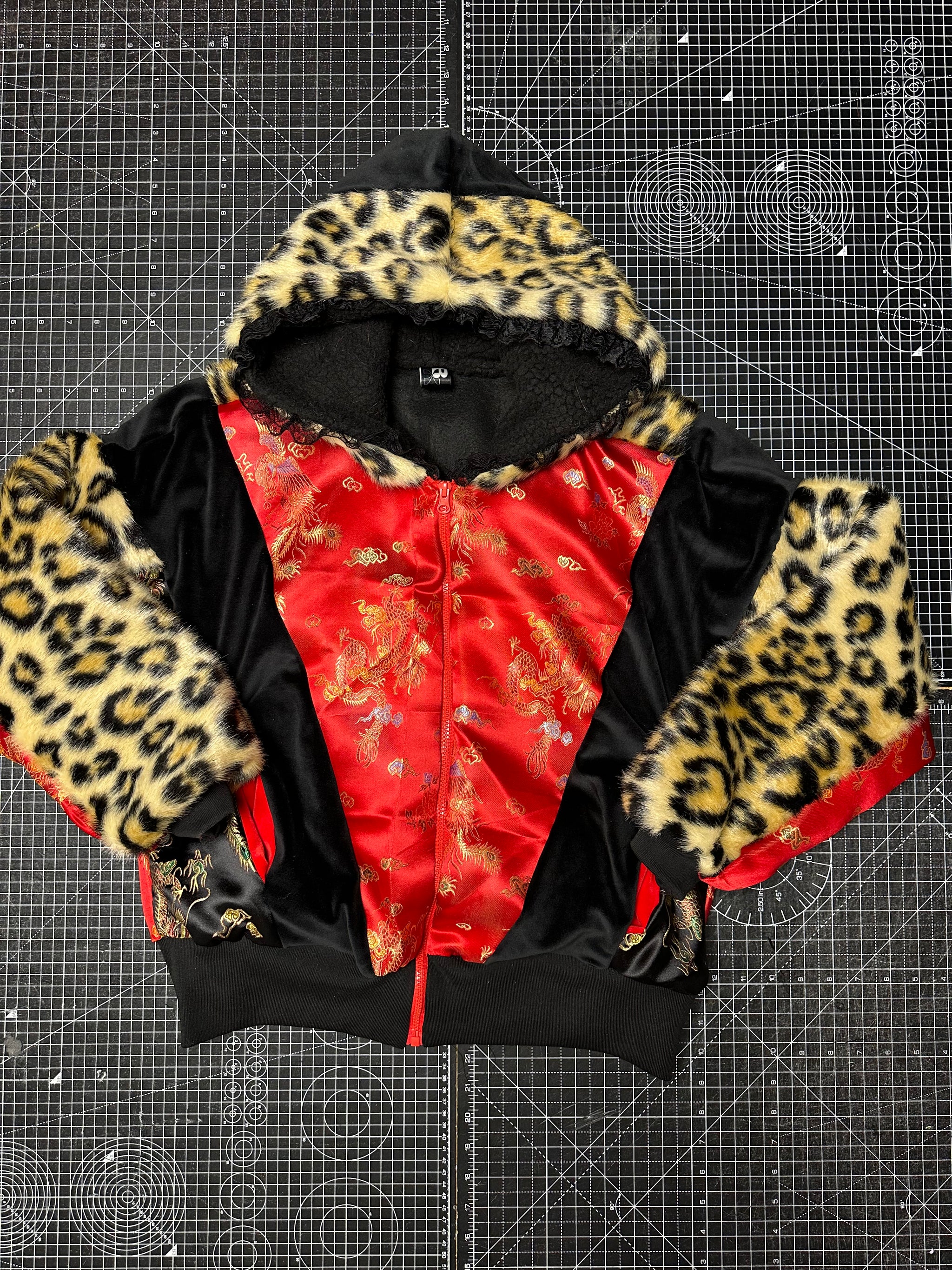 Red Dragon Satin X Leopard Faux fur Tracksuit Jacket (M/L)